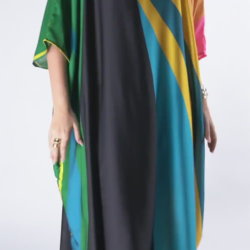 Kaftan is made of super comfortable fabric. It Embraces Comfort and fashion in every thread. This kaftan is perfect for beach wear, Resort wear, vacations and casual outings or any special occasion.